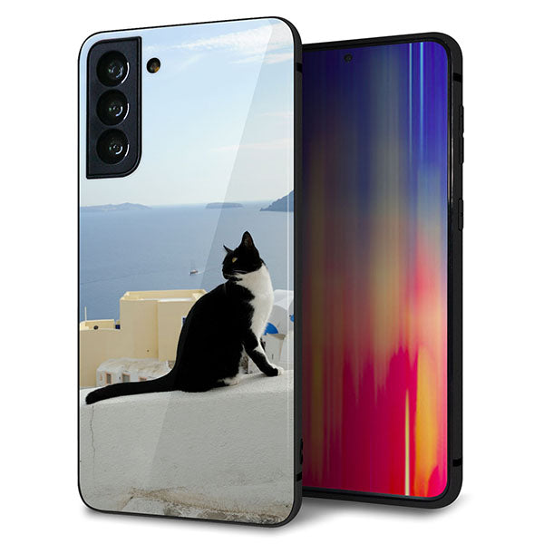au ギャラクシーS21+ 5G SCG10 強化ガラス&TPUスマホケース ガラプリ【VA805 ネコと地中海】