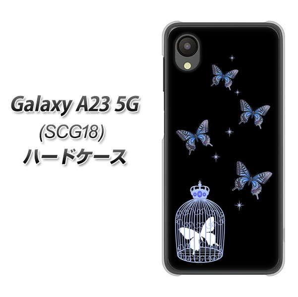 Galaxy A23 5G SCG18 au 高画質仕上げ 背面印刷 ハードケース【AG812 蝶の王冠鳥かご(黒×青)】