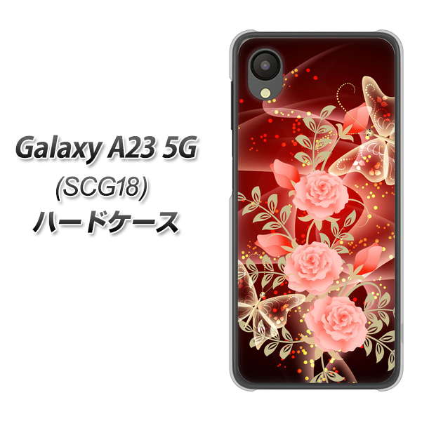 Galaxy A23 5G SCG18 au 高画質仕上げ 背面印刷 ハードケース【VA824 魅惑の蝶とピンクのバラ】