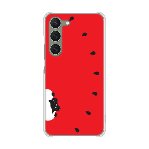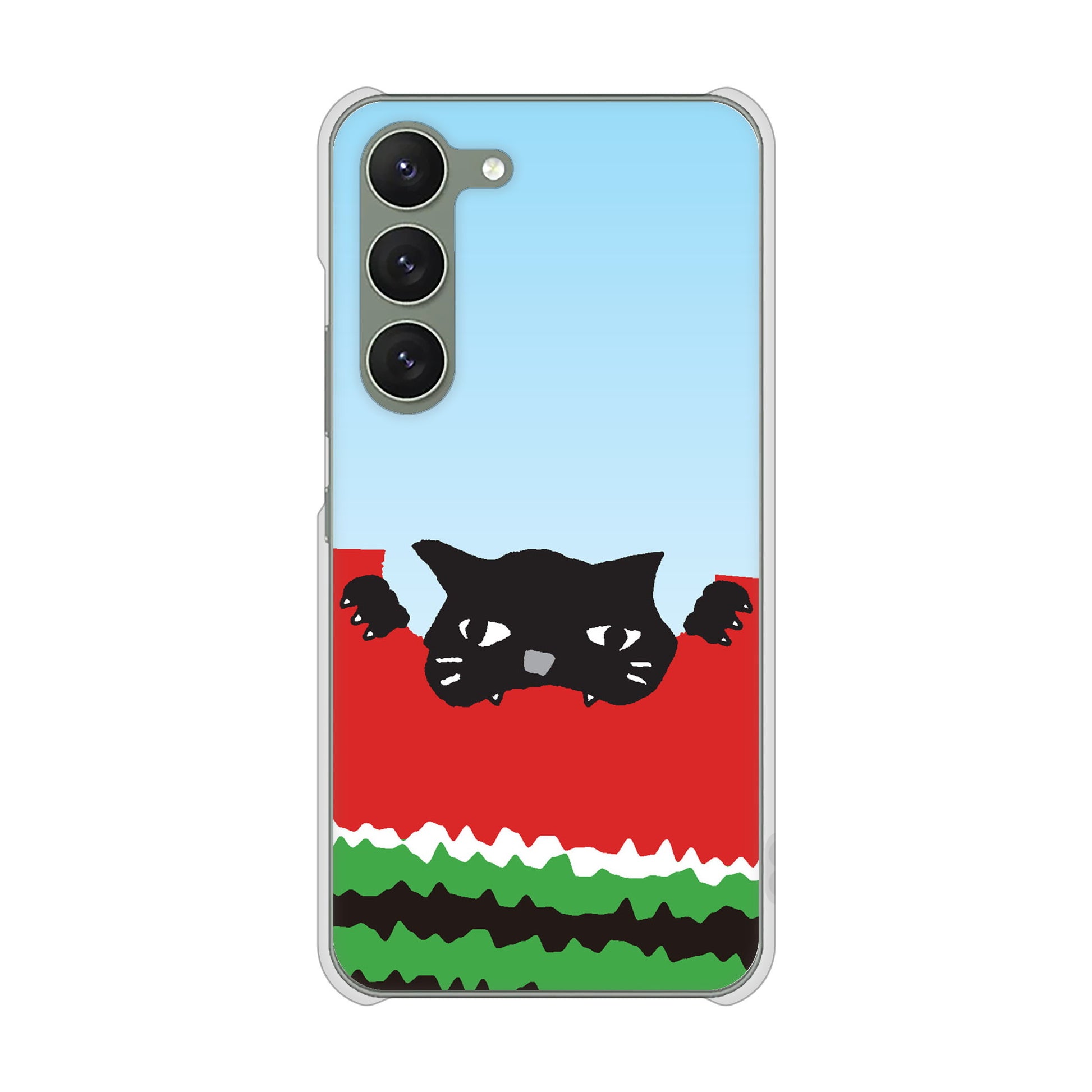 Galaxy S23 SCG19 au 高画質仕上げ 背面印刷 ハードケース すいかをかじるネコ