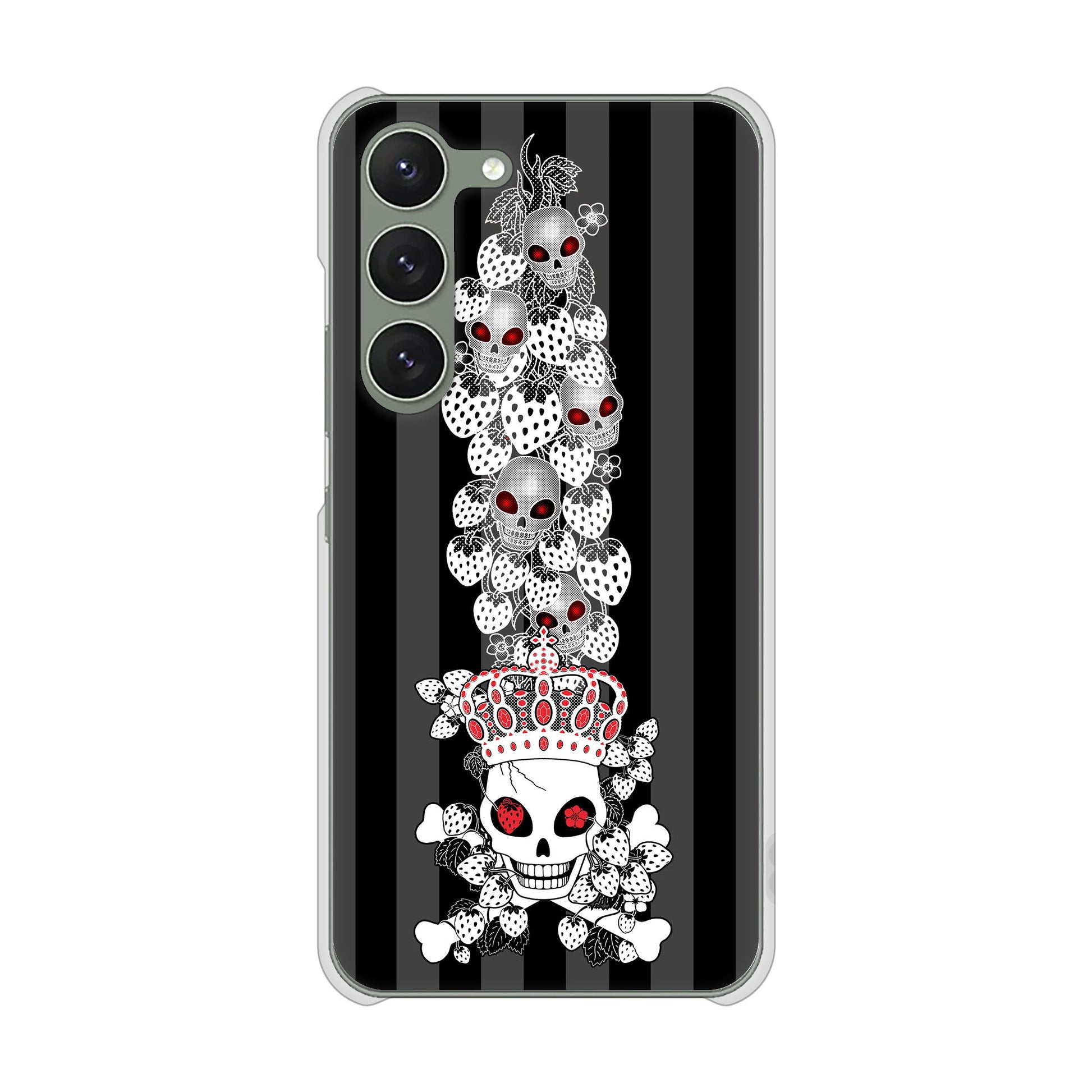 Galaxy S23 SCG19 au 高画質仕上げ 背面印刷 ハードケース むかいあぐる 苺骸骨王冠蔦