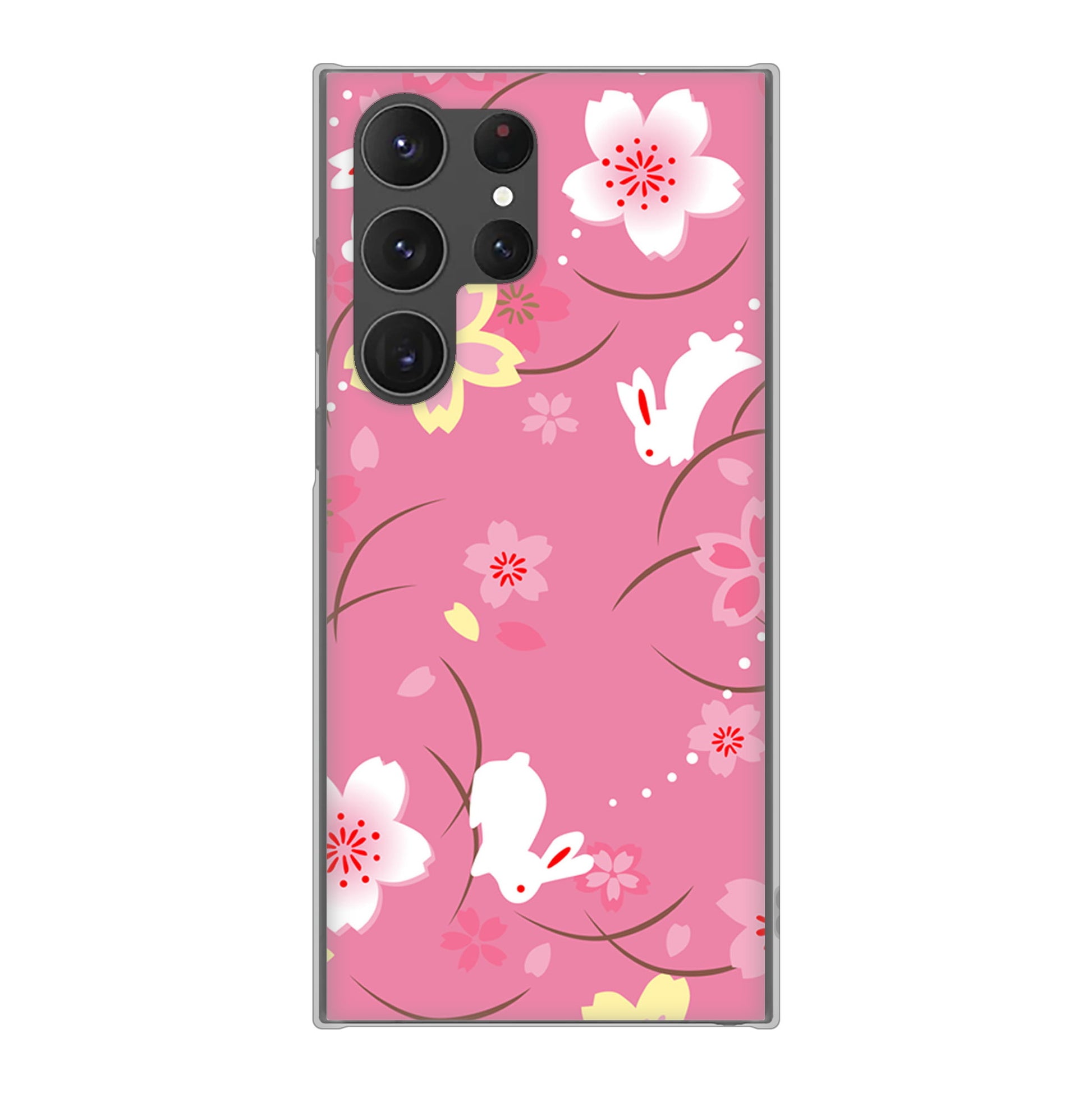 Galaxy S23 Ultra SCG20 au 高画質仕上げ 背面印刷 ハードケース 【149 桜と白うさぎ】