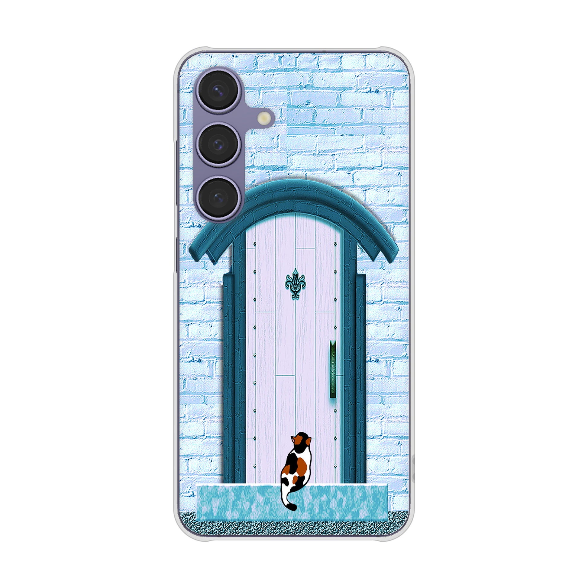 Galaxy S24 SCG25 au 高画質仕上げ 背面印刷 ハードケース猫とドア