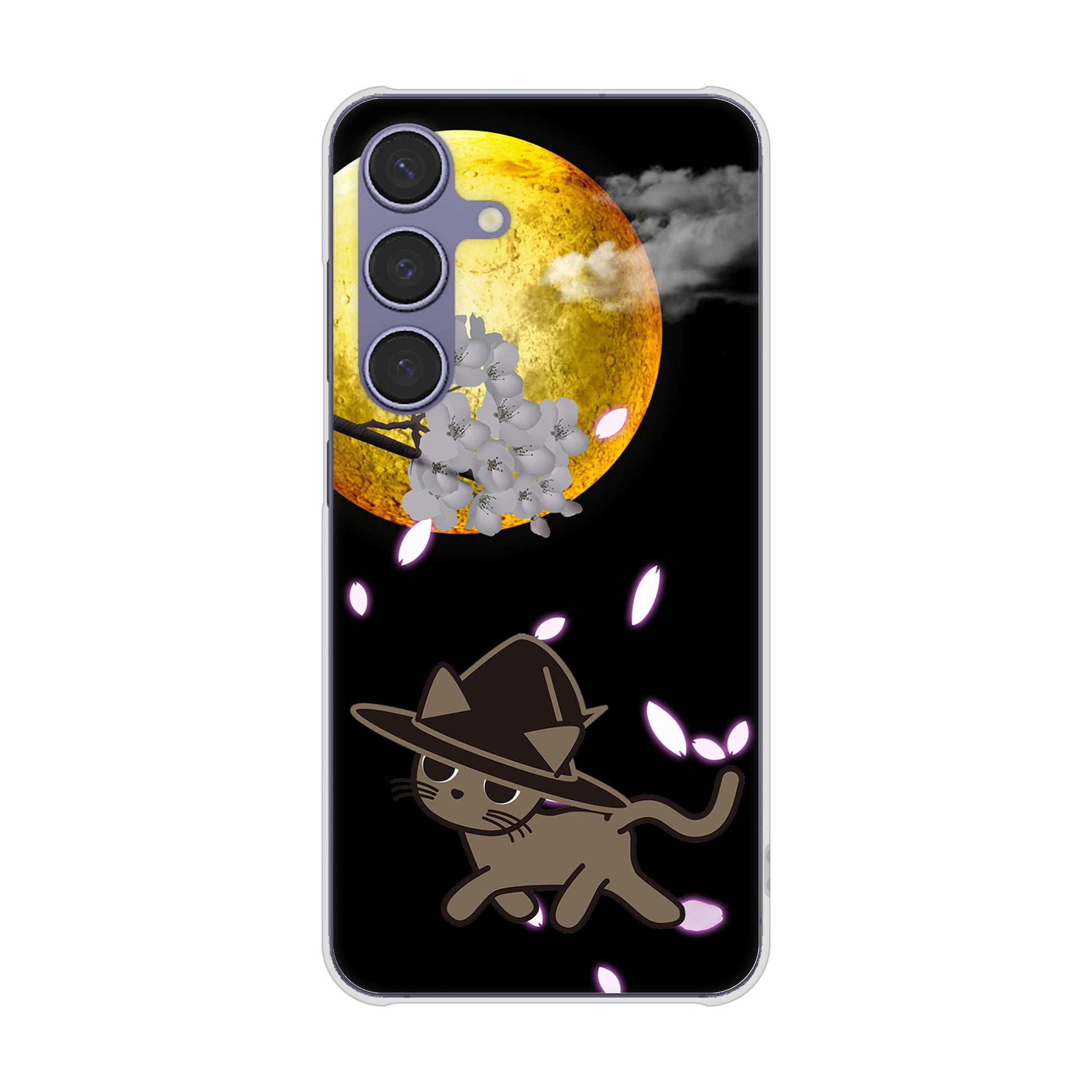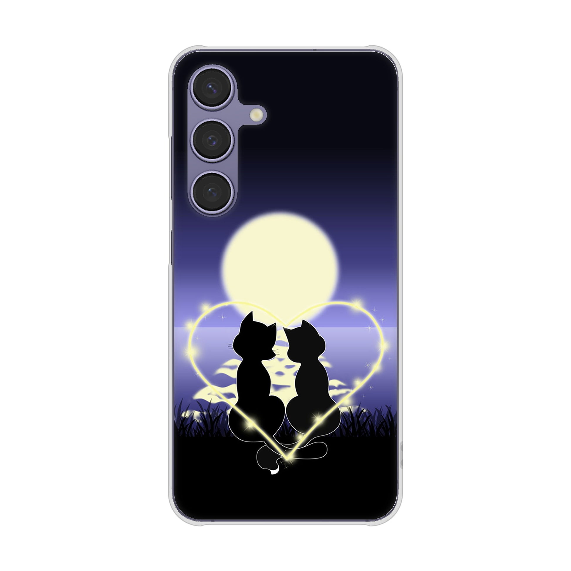 Galaxy S24 SCG25 au 高画質仕上げ 背面印刷 ハードケース夜とネコ