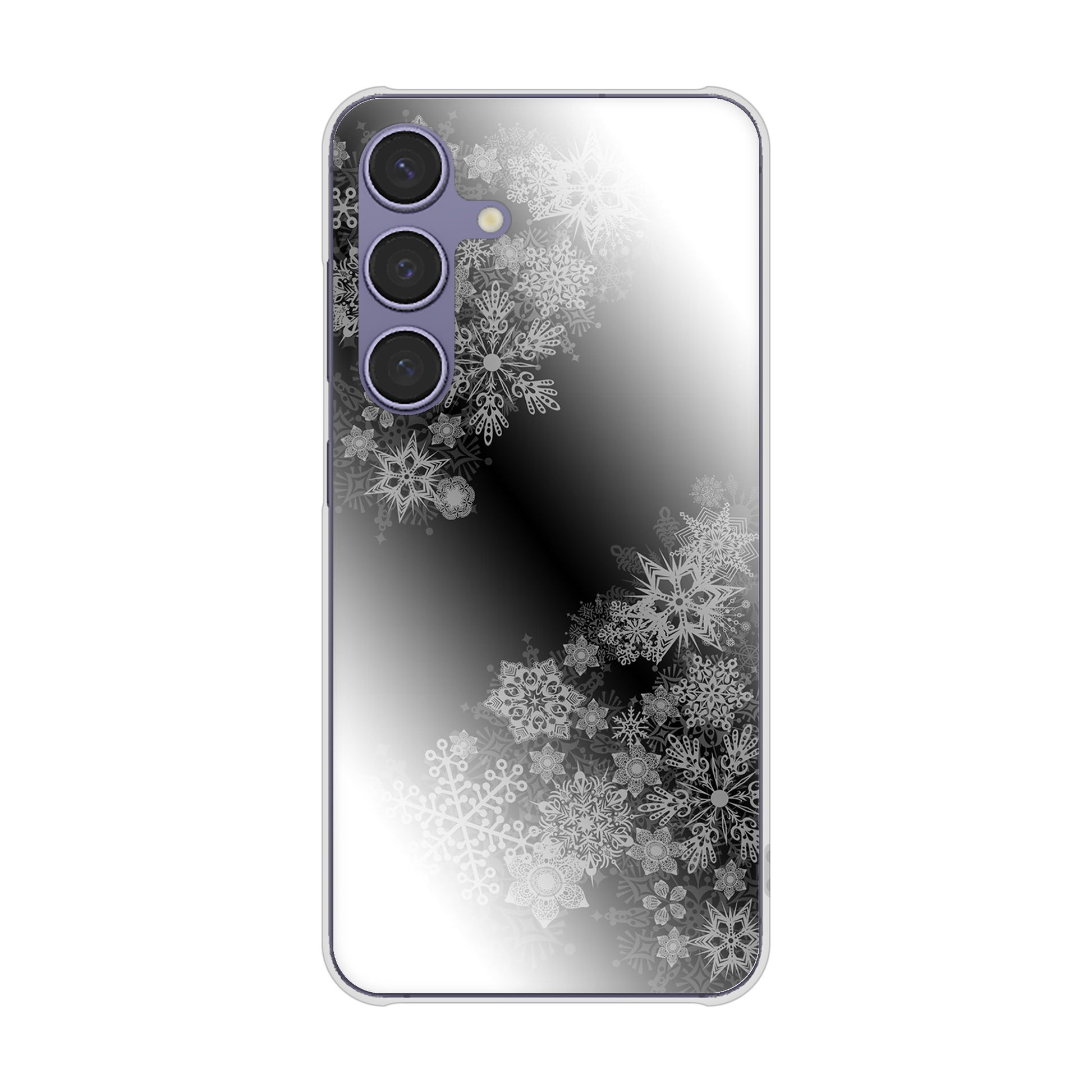 Galaxy S24 SCG25 au 高画質仕上げ 背面印刷 ハードケース 【YJ340 モノトーン 雪の結晶 】