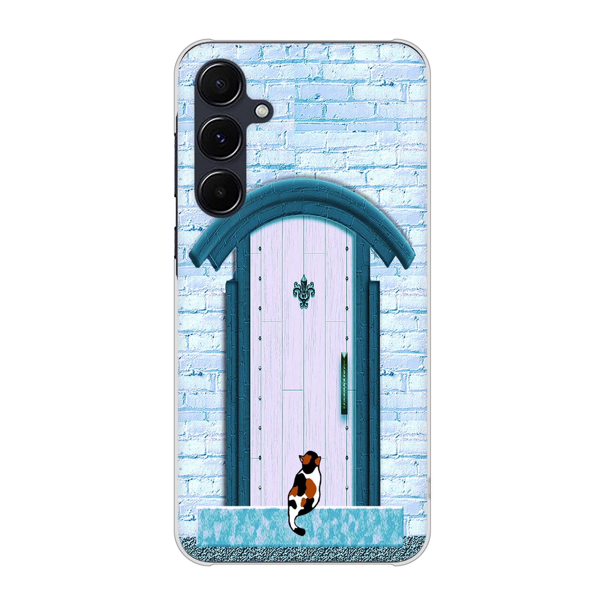Galaxy A55 5G SCG27 au 高画質仕上げ 背面印刷 ハードケース猫とドア