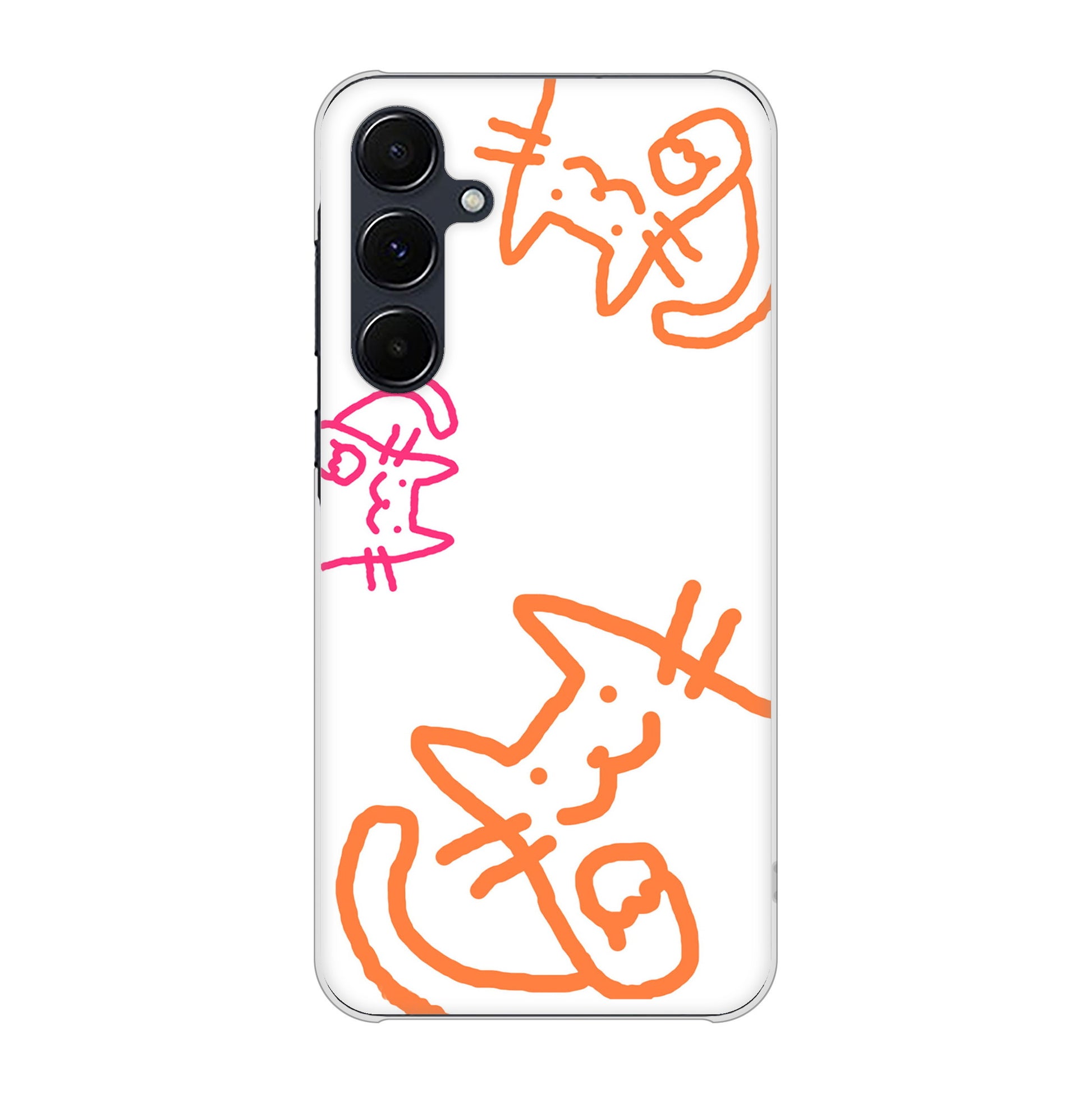 Galaxy A55 5G SCG27 au 高画質仕上げ 背面印刷 ハードケース 【1098 手まねきする3匹のネコ】