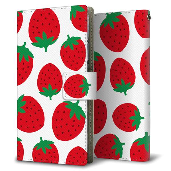 Galaxy S26 Ultra SCG37 au 高画質仕上げ プリント手帳型ケース ( 薄型スリム )大きいイチゴ模様