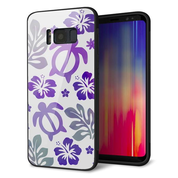 au ギャラクシー S8 SCV36 強化ガラス&TPUスマホケース ガラプリ【SC878 ハワイアンアロハホヌ(パープル)】