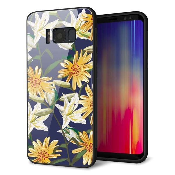 au ギャラクシー S8 SCV36 強化ガラス&TPUスマホケース ガラプリ【SC893 ボタニカル デイジー&リリー】