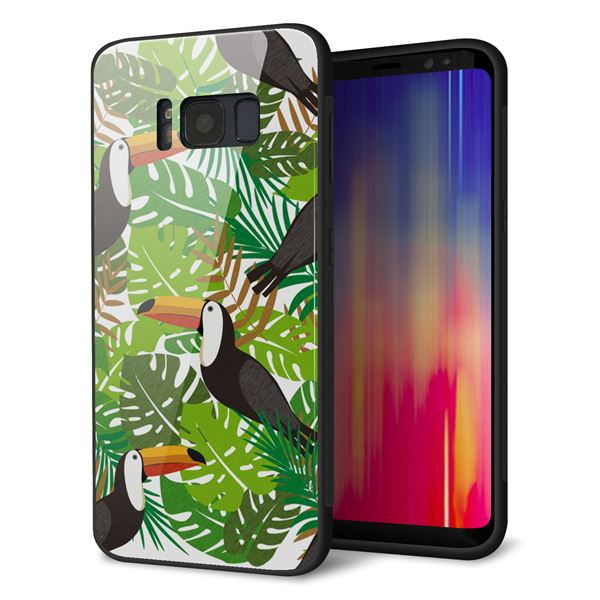 au ギャラクシー S8 SCV36 強化ガラス&TPUスマホケース ガラプリ【SC894 ボタニカル トロピカルバード】