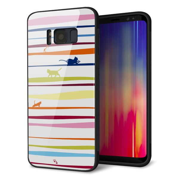 au ギャラクシー S8 SCV36 強化ガラス&TPUスマホケース ガラプリ【YA893 ストライプネコ02 L】