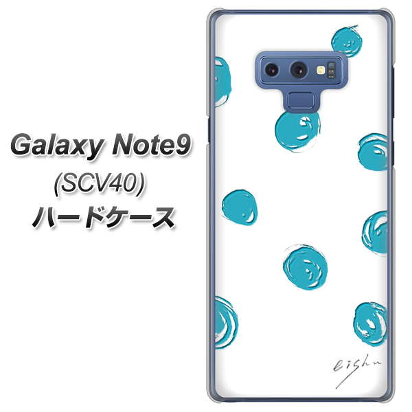 au ギャラクシー ノート9 SCV40 高画質仕上げ 背面印刷 ハードケース【OE839 手描きシンプル ホワイト×ブルー】