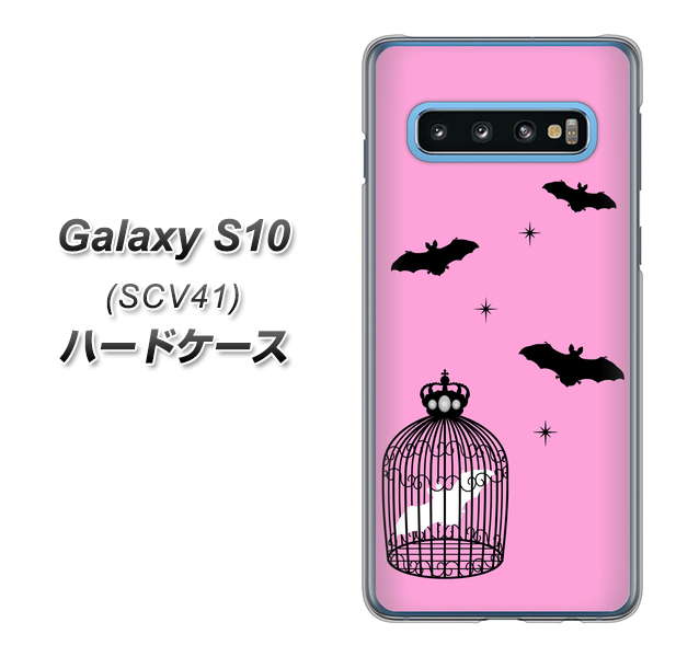 au ギャラクシー S10 SCV41 高画質仕上げ 背面印刷 ハードケース【AG808 こうもりの王冠鳥かご(ピンク×黒)】