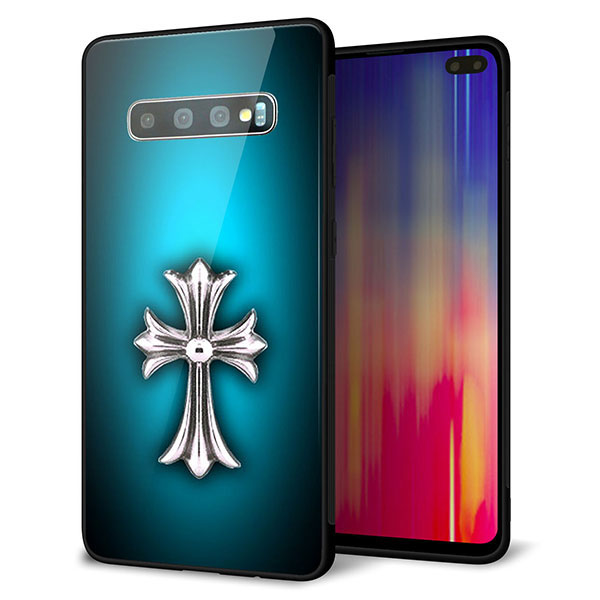 au ギャラクシー S10+ SCV42 強化ガラス&TPUスマホケース ガラプリ【334 クロスブルー】