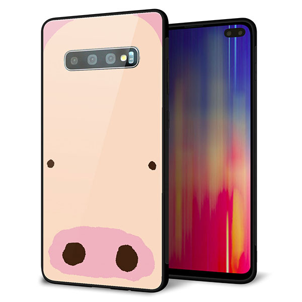 au ギャラクシー S10+ SCV42 強化ガラス&TPUスマホケース ガラプリ【353 ぶた】
