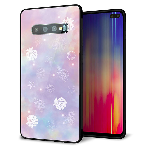 au ギャラクシー S10+ SCV42 強化ガラス&TPUスマホケース ガラプリ【KM883 シェル柄】