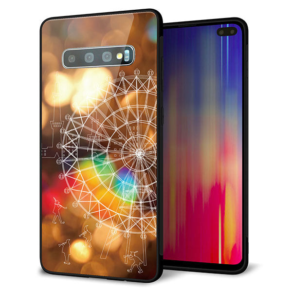au ギャラクシー S10+ SCV42 強化ガラス&TPUスマホケース ガラプリ【KM884 観覧車と笛吹】