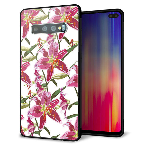 au ギャラクシー S10+ SCV42 強化ガラス&TPUスマホケース ガラプリ【SC892 ボタニカル スカーレットリリー】
