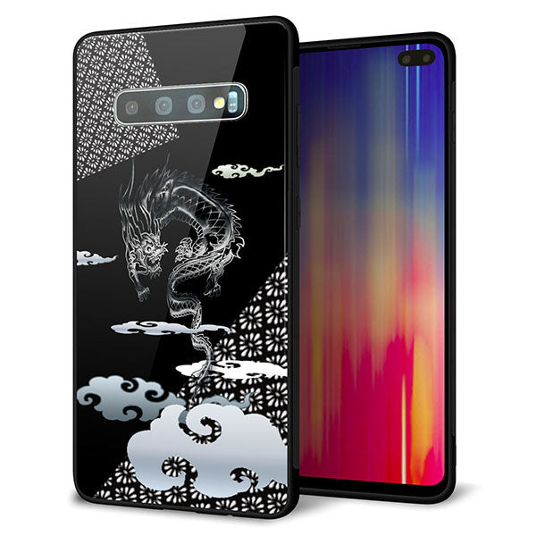 au ギャラクシー S10+ SCV42 強化ガラス&TPUスマホケース ガラプリ【YC906 雲竜01】