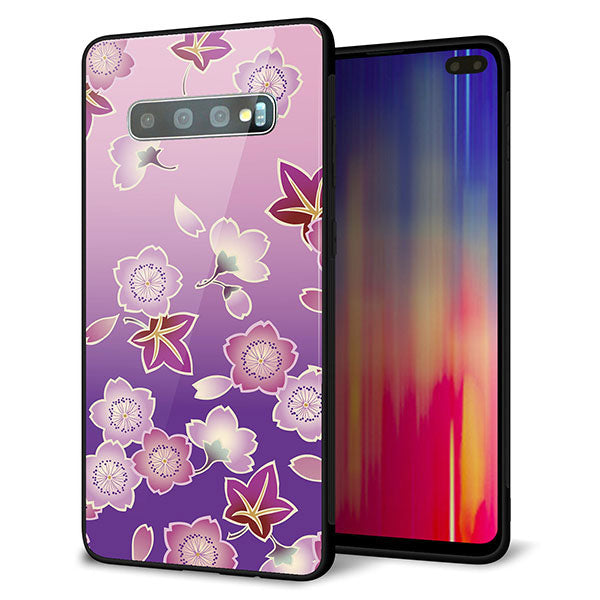 au ギャラクシー S10+ SCV42 強化ガラス&TPUスマホケース ガラプリ【YJ324 和柄 桜 もみじ】