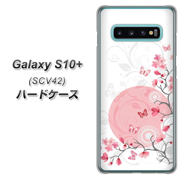 au ギャラクシー S10+ SCV42 高画質仕上げ 背面印刷 ハードケース【030 花と蝶(うす桃色)】