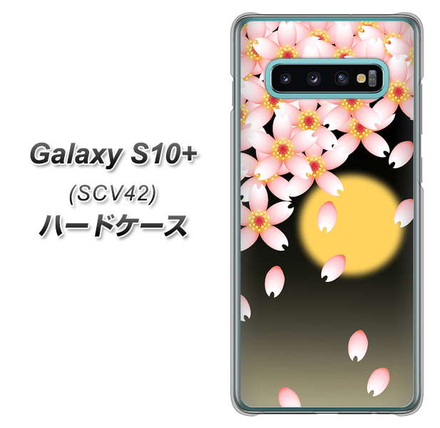 au ギャラクシー S10+ SCV42 高画質仕上げ 背面印刷 ハードケース【136 満月と夜桜】