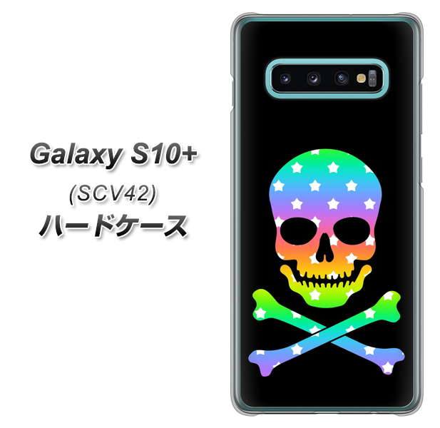 au ギャラクシー S10+ SCV42 高画質仕上げ 背面印刷 ハードケース【1072 ドクロフレームレインボースター】