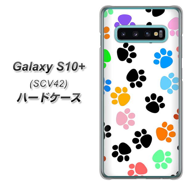 au ギャラクシー S10+ SCV42 高画質仕上げ 背面印刷 ハードケース【1108 あしあとカラフル】