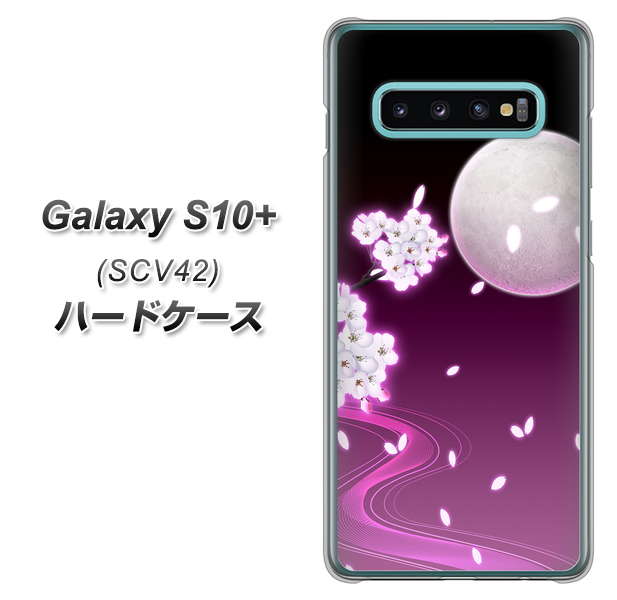 au ギャラクシー S10+ SCV42 高画質仕上げ 背面印刷 ハードケース【1223 紫に染まる月と桜】