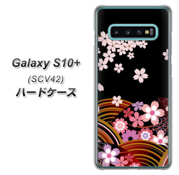au ギャラクシー S10+ SCV42 高画質仕上げ 背面印刷 ハードケース【1237 和柄&筆文字・夜桜の宴】