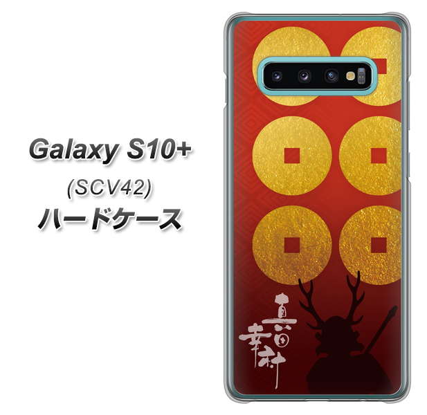 au ギャラクシー S10+ SCV42 高画質仕上げ 背面印刷 ハードケース【AB802 真田幸村 シルエットと家紋】