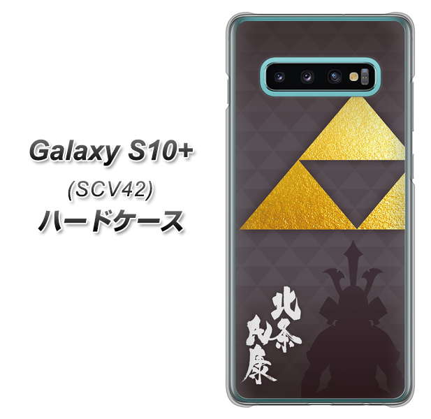 au ギャラクシー S10+ SCV42 高画質仕上げ 背面印刷 ハードケース【AB810 北条氏康 シルエットと家紋】