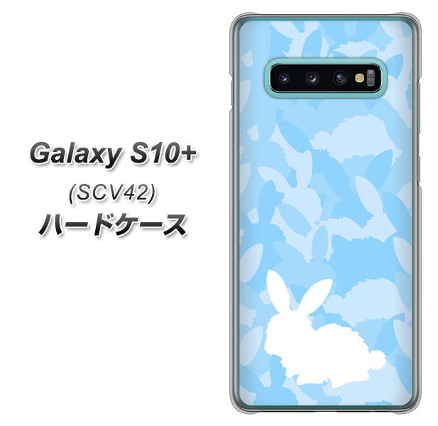 au ギャラクシー S10+ SCV42 高画質仕上げ 背面印刷 ハードケース【AG805 うさぎ迷彩風(水色)】