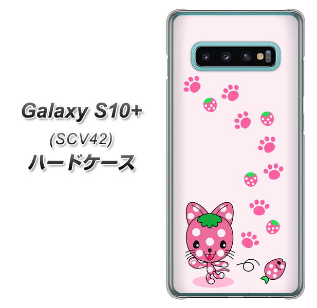au ギャラクシー S10+ SCV42 高画質仕上げ 背面印刷 ハードケース【AG819 イチゴ猫のにゃんベリー(ピンク)】
