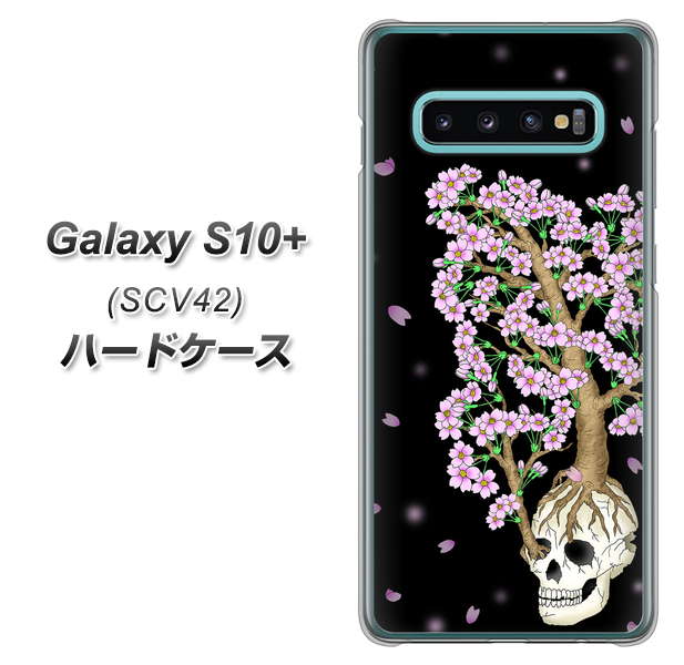au ギャラクシー S10+ SCV42 高画質仕上げ 背面印刷 ハードケース【AG829 骸骨桜(黒)】