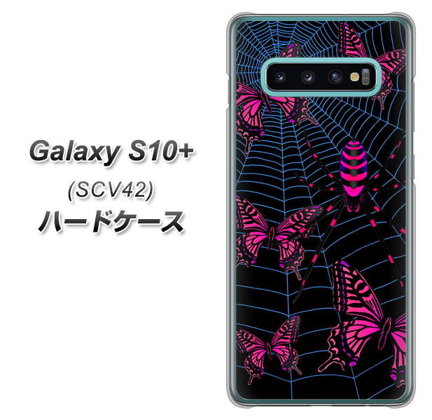 au ギャラクシー S10+ SCV42 高画質仕上げ 背面印刷 ハードケース【AG831 蜘蛛の巣に舞う蝶(赤)】
