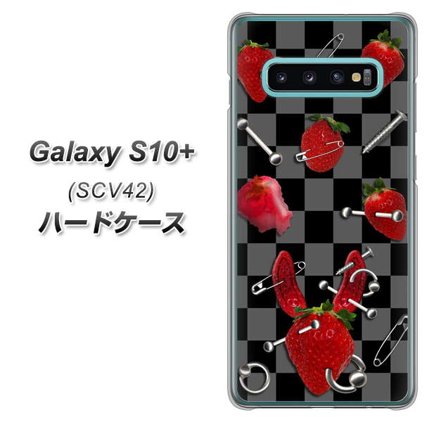 au ギャラクシー S10+ SCV42 高画質仕上げ 背面印刷 ハードケース【AG833 苺パンク(黒)】