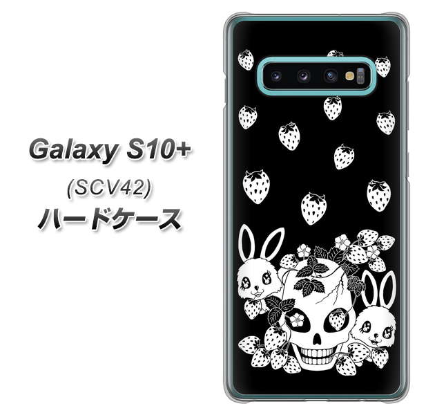 au ギャラクシー S10+ SCV42 高画質仕上げ 背面印刷 ハードケース【AG837 苺兎(黒)】