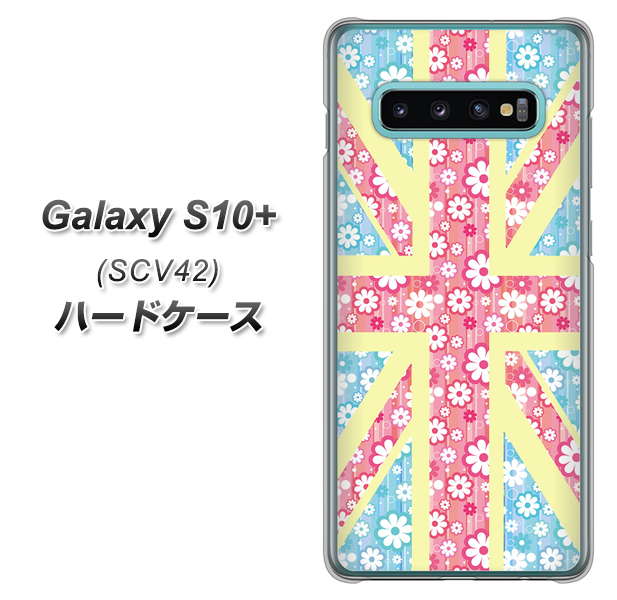 au ギャラクシー S10+ SCV42 高画質仕上げ 背面印刷 ハードケース【EK895 ユニオンジャックパステルフラワー】