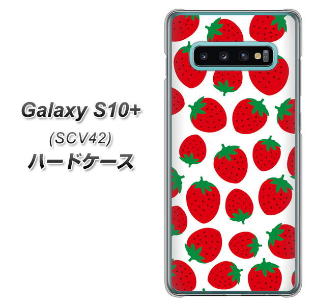 au ギャラクシー S10+ SCV42 高画質仕上げ 背面印刷 ハードケース【SC811 小さいイチゴ模様 レッド】