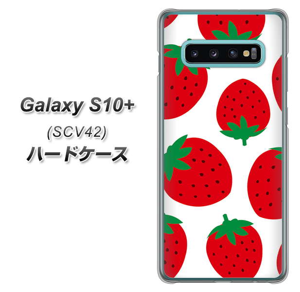 au ギャラクシー S10+ SCV42 高画質仕上げ 背面印刷 ハードケース【SC818 大きいイチゴ模様レッド】
