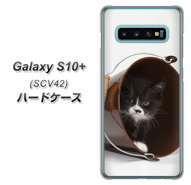 au ギャラクシー S10+ SCV42 高画質仕上げ 背面印刷 ハードケース【VA800 ネコとバケツ】