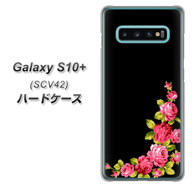 au ギャラクシー S10+ SCV42 高画質仕上げ 背面印刷 ハードケース【VA826 バラのフレーム(黒)】