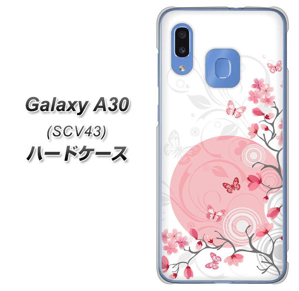 au ギャラクシー A30 SCV43 高画質仕上げ 背面印刷 ハードケース【030 花と蝶(うす桃色)】