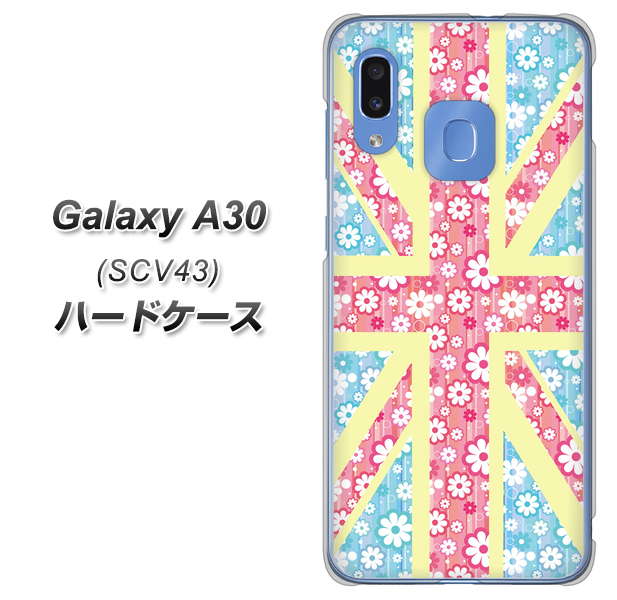 au ギャラクシー A30 SCV43 高画質仕上げ 背面印刷 ハードケース【EK895 ユニオンジャックパステルフラワー】
