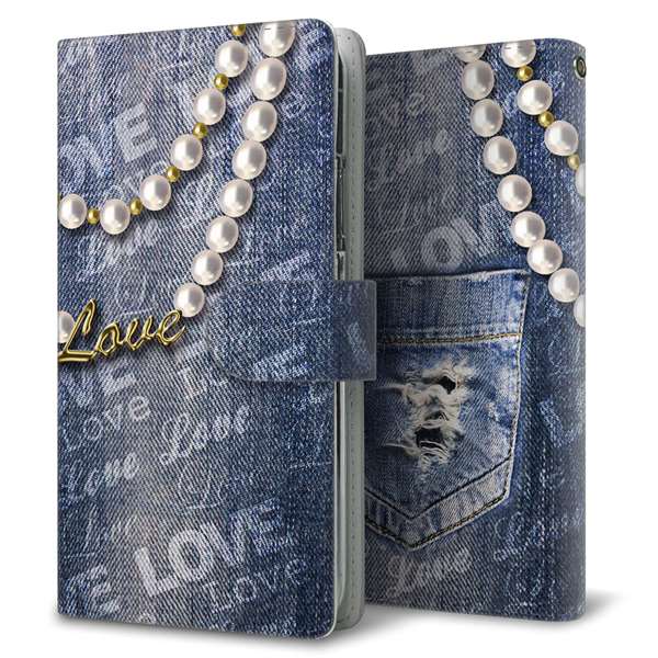 au ギャラクシーA41 SCV48 高画質仕上げ プリント手帳型ケース(通常型)【SC917 ダメージデニム パール】