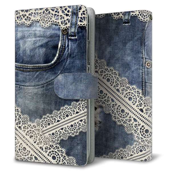 au ギャラクシーA41 SCV48 高画質仕上げ プリント手帳型ケース(通常型)【SC920 ダメージデニム レース】