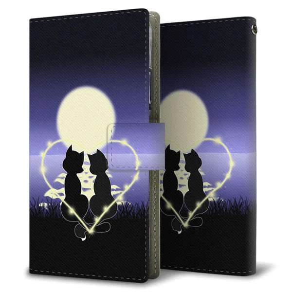 au ギャラクシーA41 SCV48 画質仕上げ プリント手帳型ケース(薄型スリム)【604 月明かりの恋ネコ】