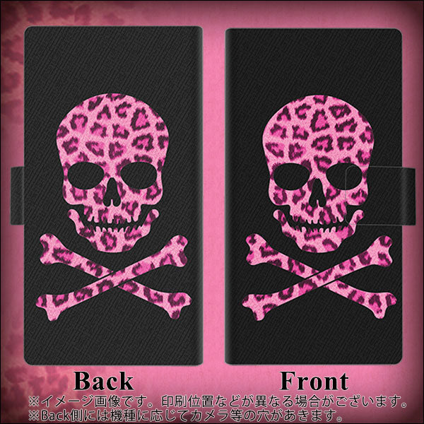 au ギャラクシーA41 SCV48 画質仕上げ プリント手帳型ケース(薄型スリム)【1079 ドクロフレームヒョウピンク】